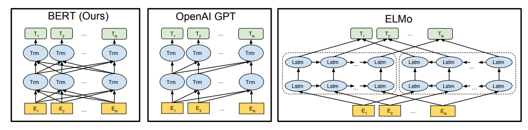 언어 모델을Pre-training 하는 것은 NLP 문제의 성능을 향상하는데 있어 아주 효율적입니다. 전이 학습을 위해 사용되는 모델 구조는 대표적으로 LTR(Left-To-Right) Transformer로 학습시킨 GPT(Decoder-only Transformer라고도 하죠?), Context feature를 중점으로 학습한 ELMo, Bidirectional LSTM으로 언어 모델을 학습시킨 ULMFiT이 있습니다.