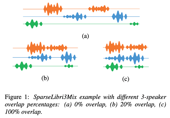 보다 사실적이고 실제 대화와 유사한 시나리오를 위해 한걸음 더 나아가 LibriMix 데이터셋의 두 명 및 세 명의 speaker test sets의 sparsely overlapping 버전도 출시했으며, 이 데이터셋을 각각 SparseLibri2Mix 및 SparseLibri3Mix 라고 합니다(sparse 데이터셋은 only testset 이예요).