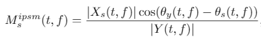 그런데 IPSM은 이론적으로 어떠한 구간에 닫혀 있지 않습니다. 때문에 이 논문의 저자들은 실험적으로 IPSM의 대부분이 0 <= IPSM(t, f) <= 1 이라는 것을 확인했습니다. 또한 대략 20%의 값이 음수라고 합니다. 그러나 이러한 음수 값은 보통 0에 근접한 값이기 때문에 max(0, ISPM(t, f)) 를 사용해서 음수 값이 나오면 0으로 치환했다고 합니다. 이를 Ideal Non-negative PSM (INPSM) 이라고 합니다. 아래에서 IPSM의 수식을 볼 수 있습니다.